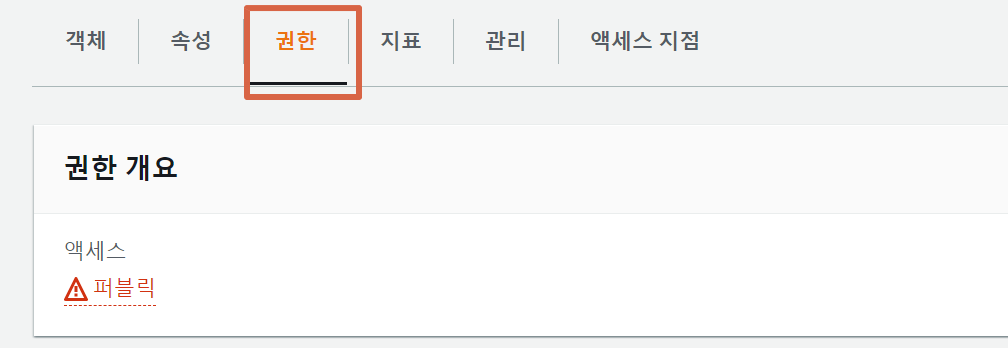 - ACL(액세스 제어 목록) : 모든 사람(읽기), 인증된 사용자 그룹(읽기)