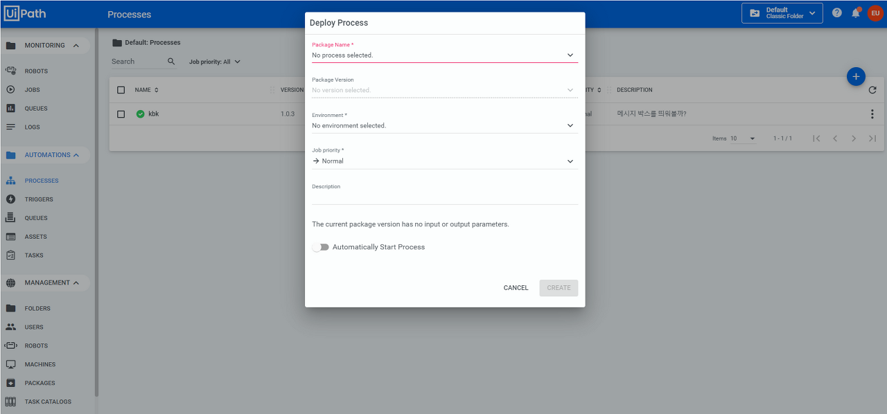 create process 시 4개의 기본 패키지가 기본으로 설정되어있다.