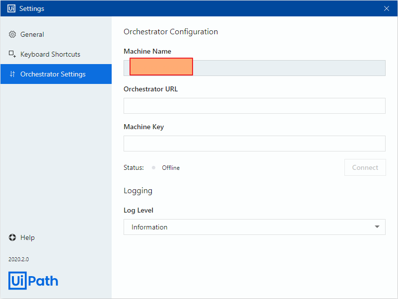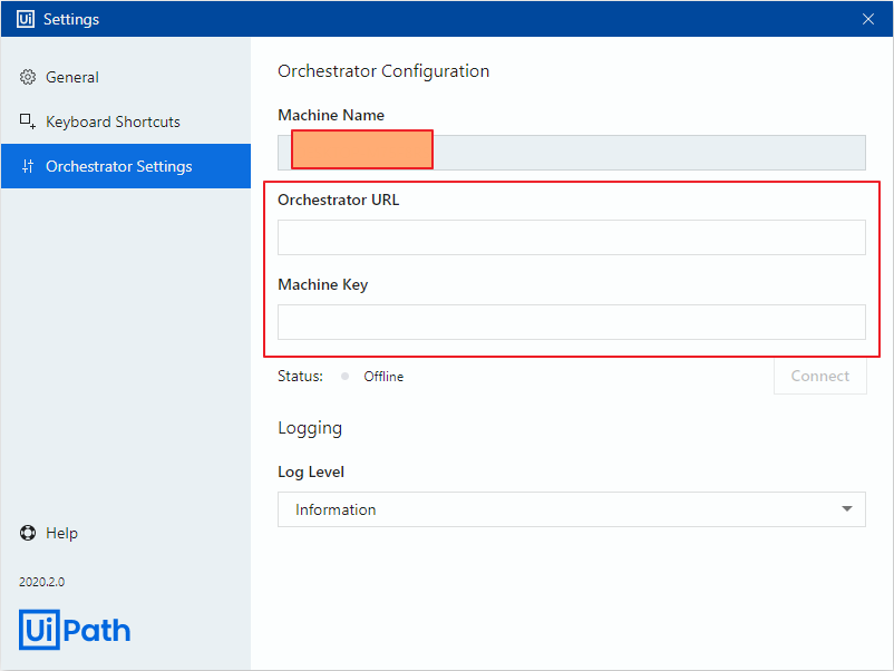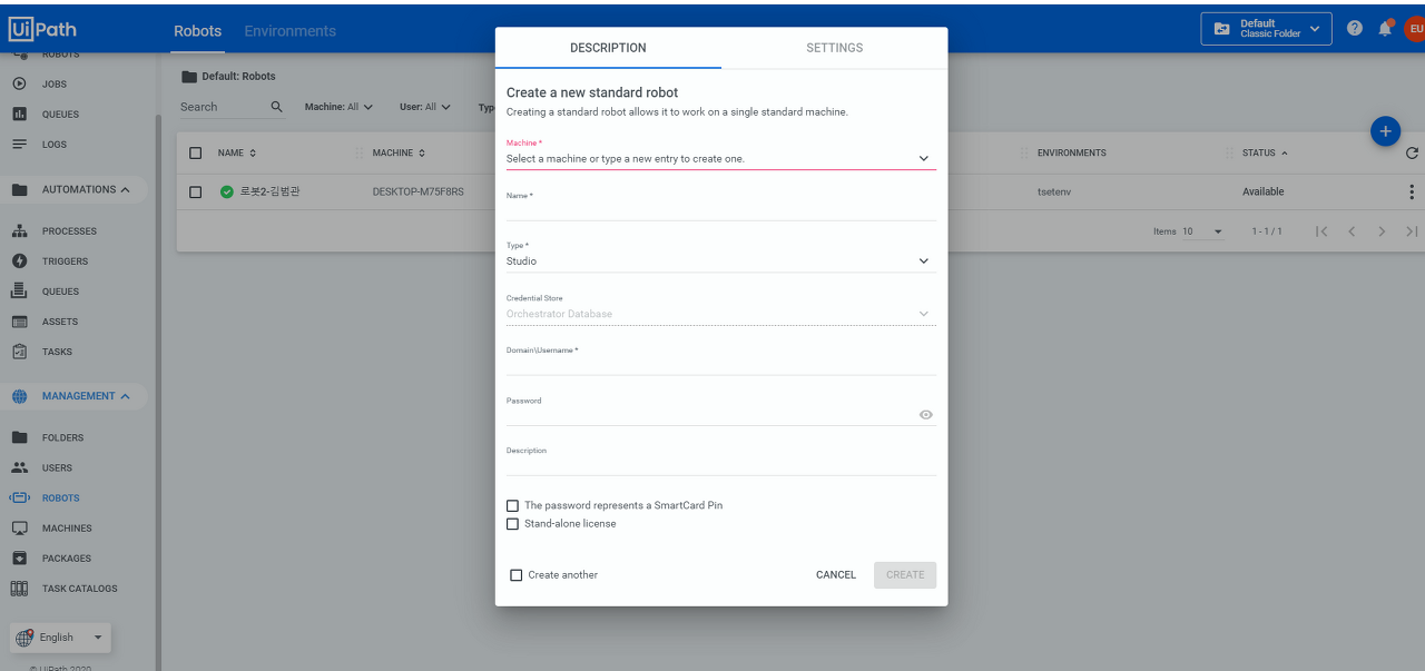 머신 키 - 로봇에 머신 키 세팅 및 오케스트라 URL 세팅
