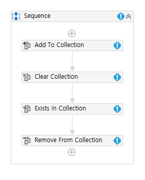다음 액티비티들은 UiPath에서 쉽게 찾아볼 수 있는 컬렉션 관련 액티비티들이다.