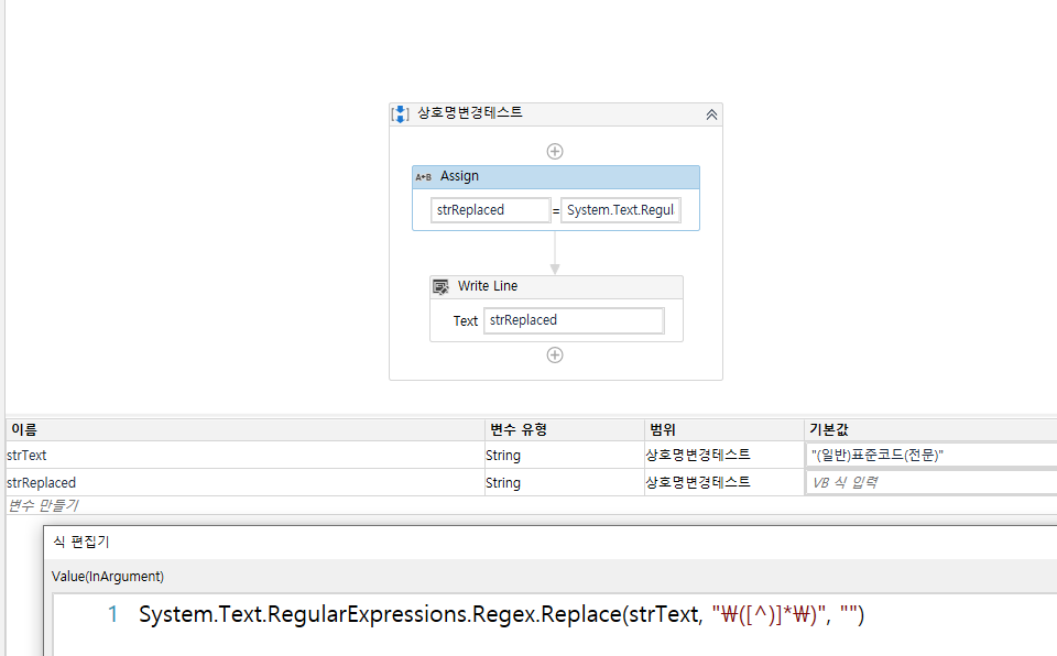Uipath의 vb.net 기준으로 정규식을 사용하여 특정 문자열을 Replace로 없애보자.