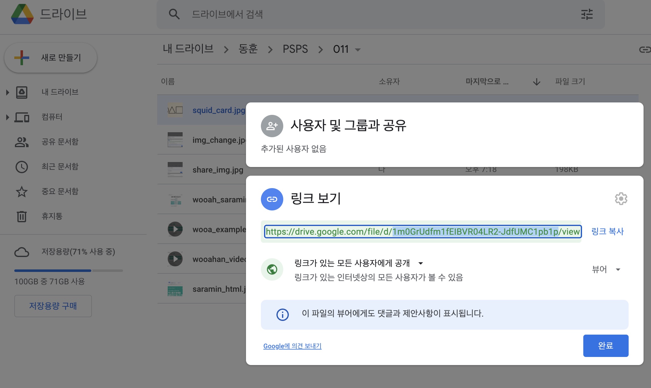 이미지 여러 장 구글 드라이브로 호스팅하기